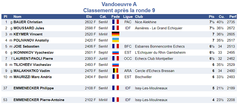 Classement Vandoeuvre