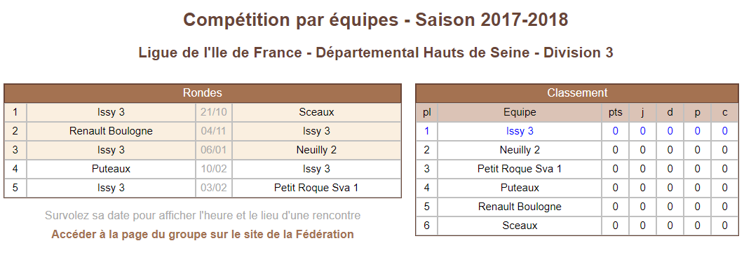 |-- Informations équipes